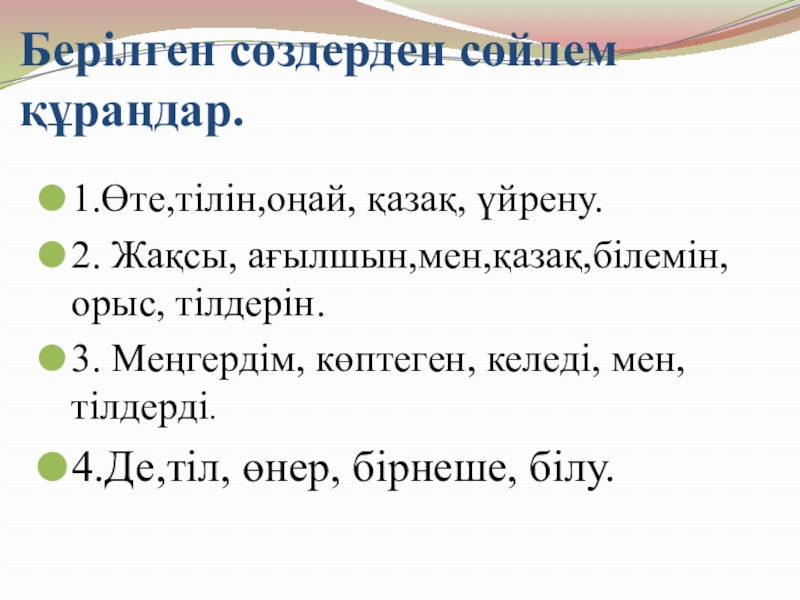 Слайд 13Берілген сөздерден сөйлем құраңдар.