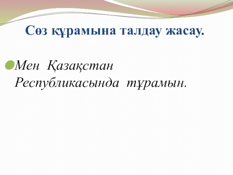 Сөз құрамына талдау жасау.Мен Қазақстан Республикасында тұрамын.