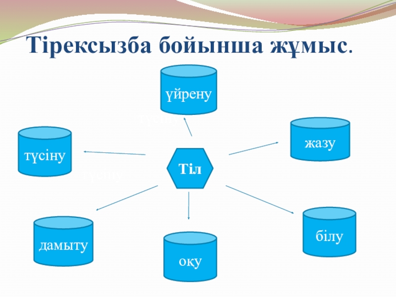 Тірексызба бойынша жұмыс.түсінужазубілуоқутүсінудамытуүйренутүсінуТіл