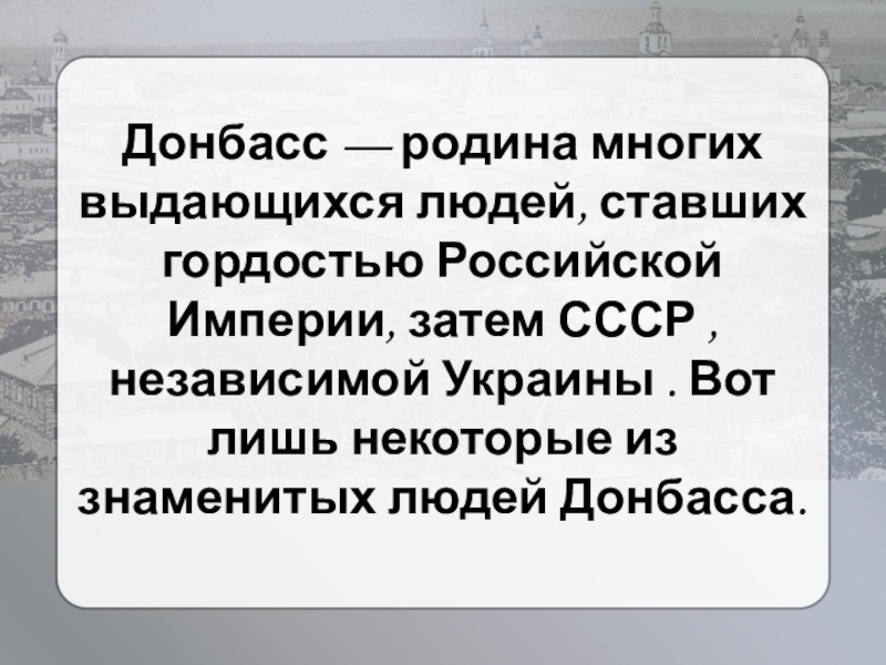 Слайд 2Донбасс — родина многих выдающихся людей, ставших гордостью Российской Империи, затем