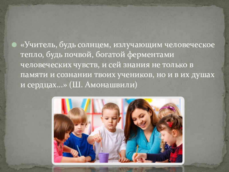 Слайд 21«Учитель, будь солнцем, излучающим человеческое тепло, будь почвой, богатой ферментами человеческих