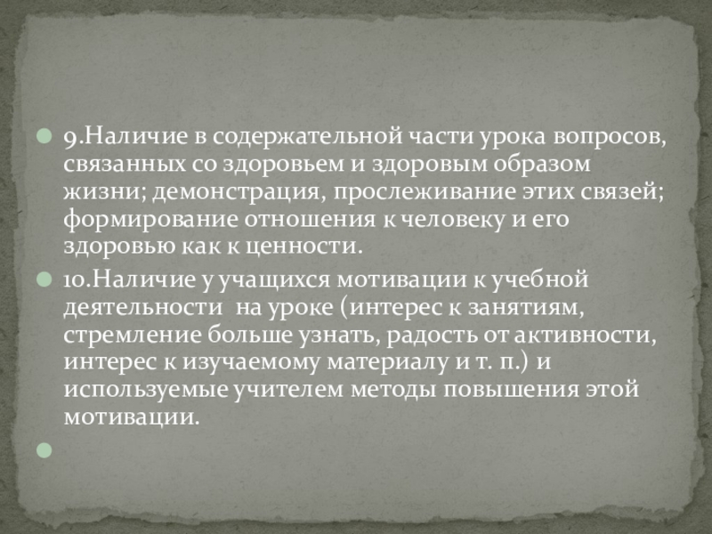Слайд 79.Наличие в содержательной части урока вопросов, связанных со здоровьем и здоровым