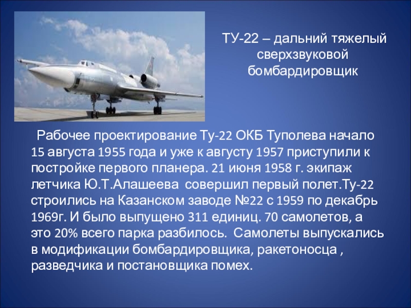 ТУ-22 – дальний тяжелый сверхзвуковой бомбардировщик