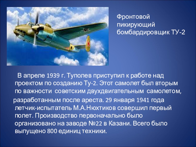 Фронтовой пикирующий бомбардировщик ТУ-2