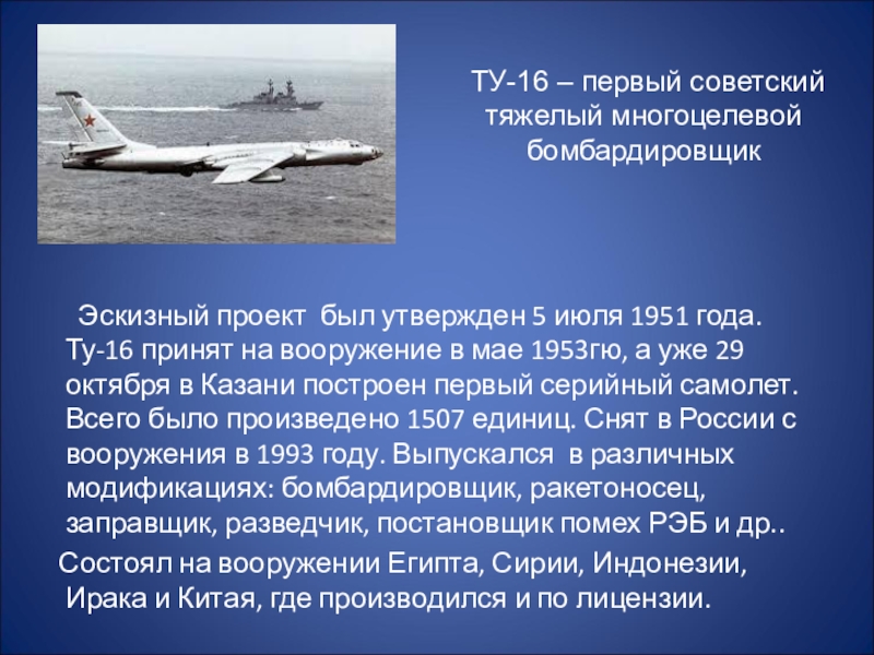 ТУ-16 – первый советский тяжелый многоцелевой бомбардировщик