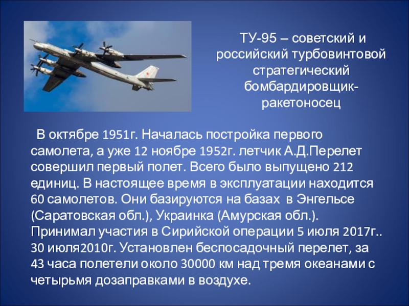 ТУ-95 – советский и российский турбовинтовой стратегический бомбардировщик-ракетоносец