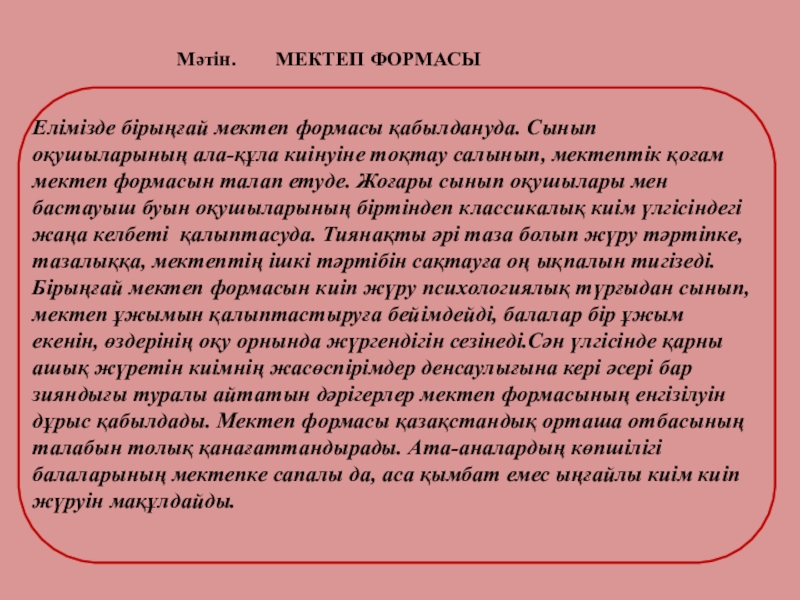 Мәтін. МЕКТЕП ФОРМАСЫ