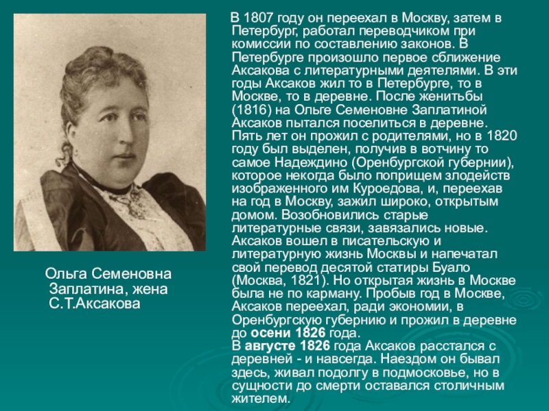 Ольга Семеновна Заплатина, жена С.Т.Аксакова