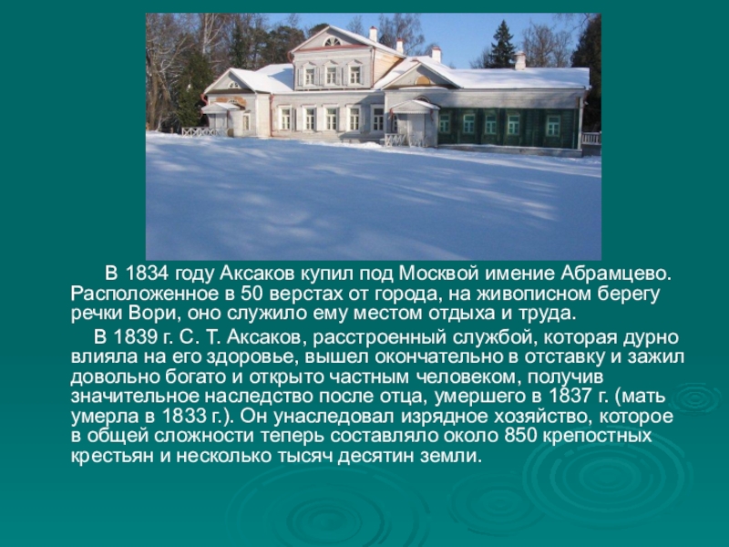В 1834 году Аксаков купил