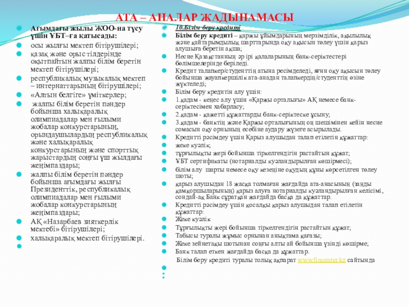 Білім беру кредиті туралы толық ақпарат www.fincenter.kz сайтында