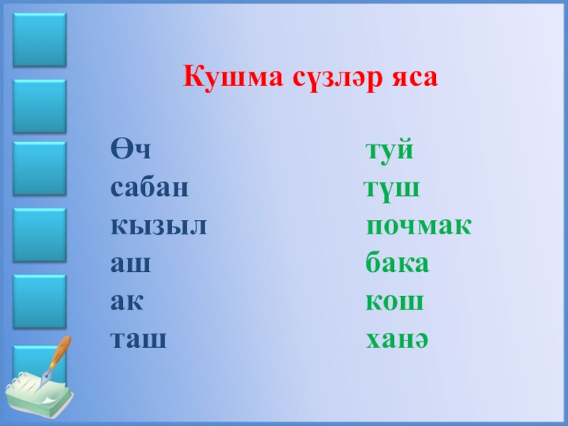 Презентация, доклад на тему 4 нче сыйныфта Кушма сүзләр темасын өйрәнү буенча презентация