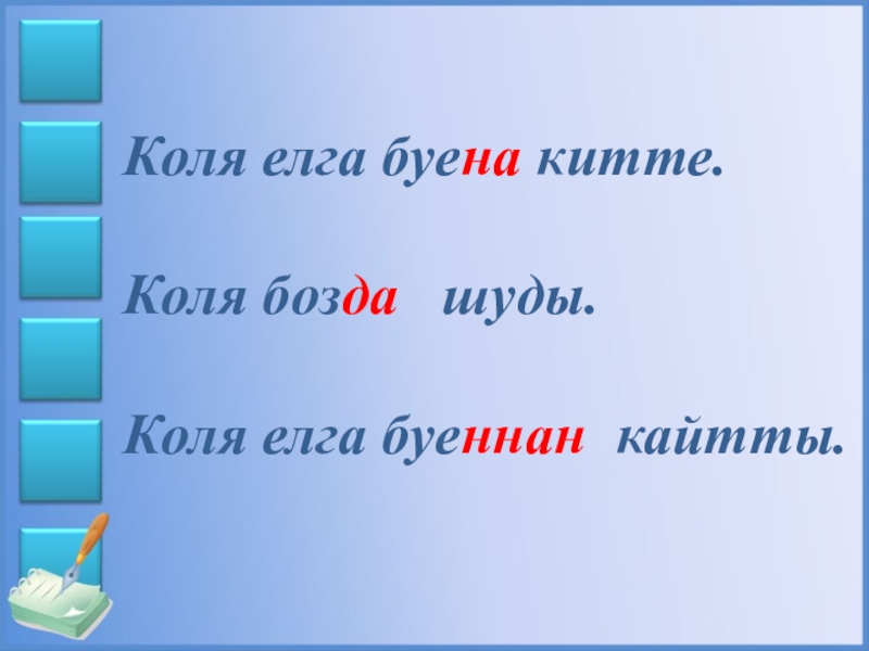 Слайд 6Коля елга буена китте. Коля бозда шуды.