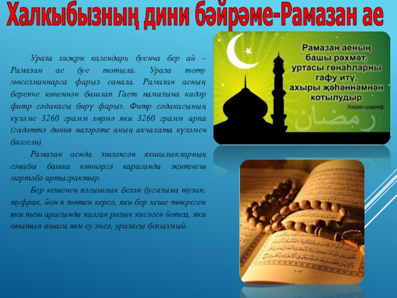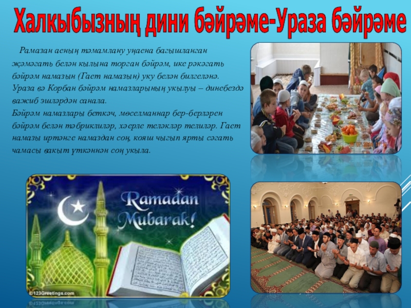 Слайд 12Халкыбызның дини бәйрәме-Рамазан ае