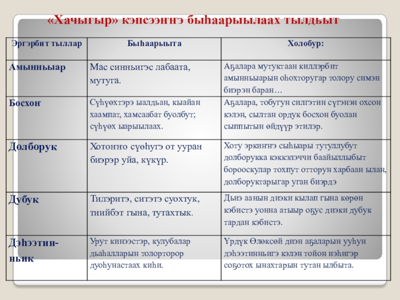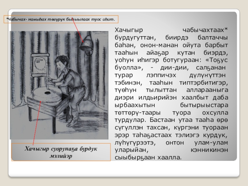 *Чабычах- намыһах төгүрүк быһыылаах туос иһит.