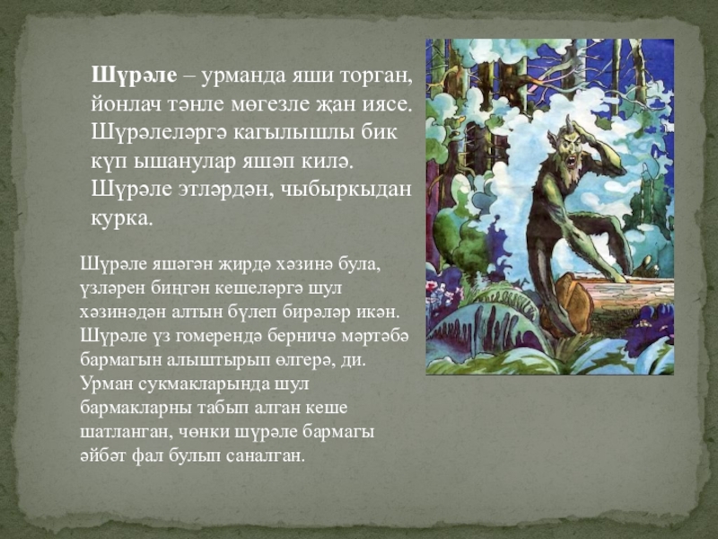 Шүрәле яшәгән җирдә хәзинә була, үзләрен биңгән кешеләргә шул хәзинәдән алтын бүлеп бирәләр икән. Шүрәле үз гомерендә берничә мәртәбә бармагын алыштырып өлгерә, ди. Урман сукмакларында шул бармакларны табып алган кеше шатланган, чөнки шүрәле бармагы әйбәт фал булып саналган.