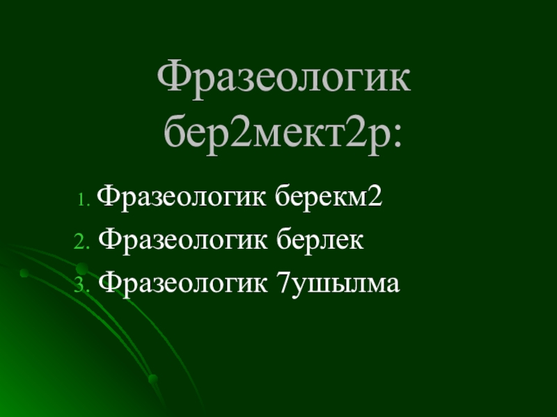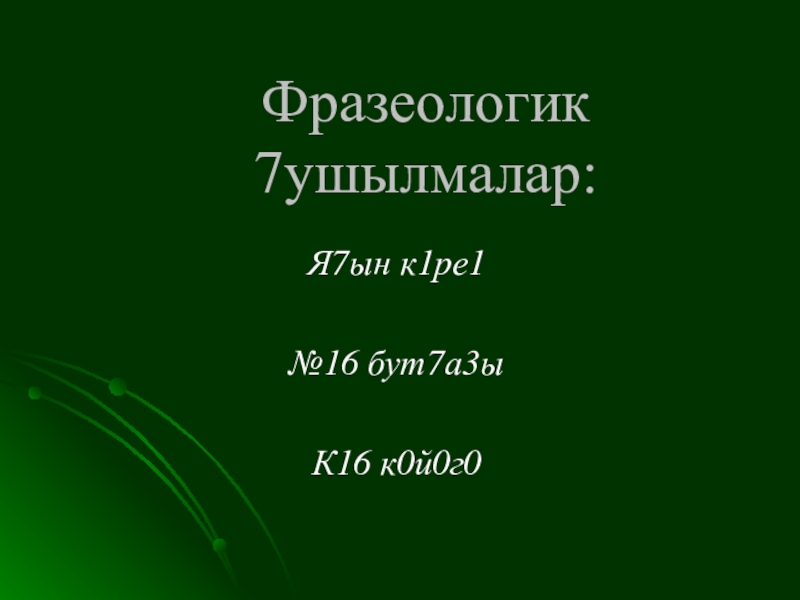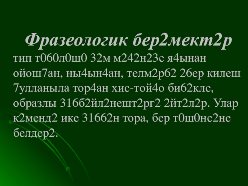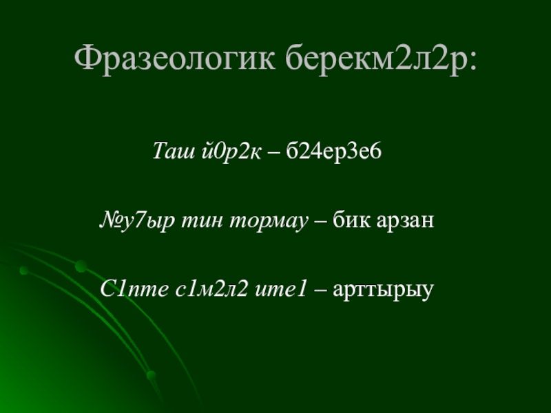 Слайд 2 Фразеологик бер2мект2р тип т060л0ш0 32м м242н23е я4ынан ойош7ан, ны4ын4ан,