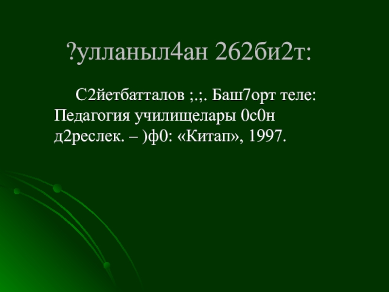 ?улланыл4ан 262би2т:   С2йетбатталов ;.;. Баш7орт теле: Педагогия училищелары 0с0н д2реслек. – )ф0: «Китап», 1997.