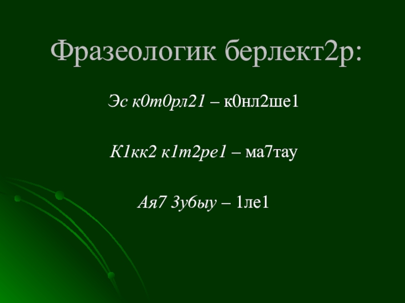 Фразеологик берлект2р:Эс к0т0рл21 – к0нл2ше1К1кк2 к1т2ре1 – ма7тауАя7 3у6ыу – 1ле1