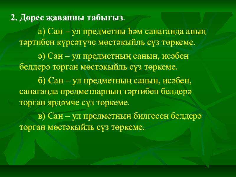 2. Дөрес җавапны табыгыз.      а) Сан – ул предметны һәм санаганда аның