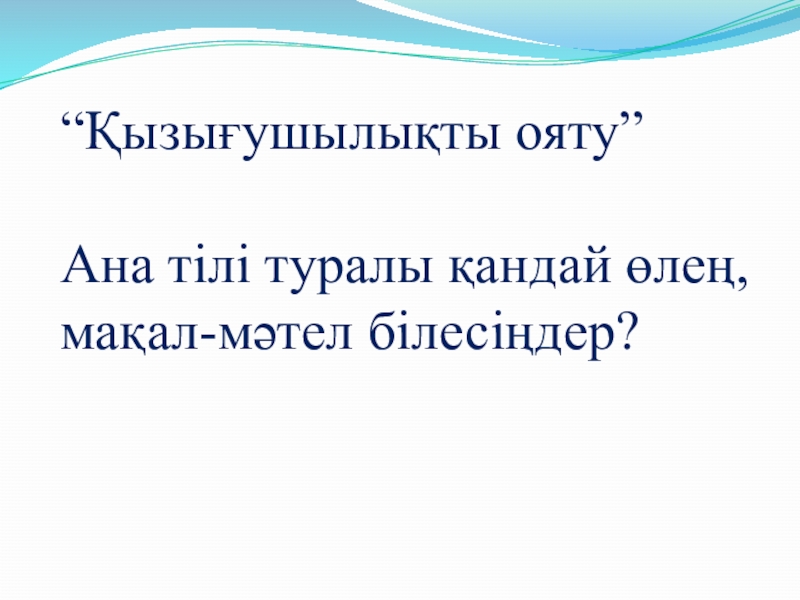 Слайд 3“Қызығушылықты ояту” Ана тілі туралы қандай өлең, мақал-мәтел білесіңдер?