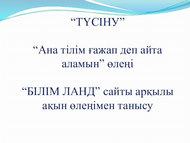 Слайд 5“ТҮСІНУ” “Ана тілім ғажап деп айта аламын” өлеңі “БІЛІМ ЛАНД” сайты арқылы ақын