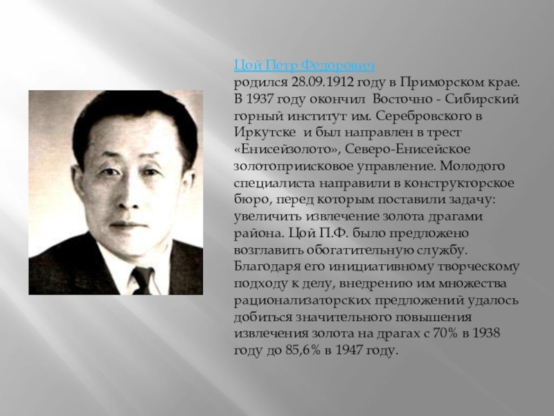 Слайд 16Цой Петр Федорович