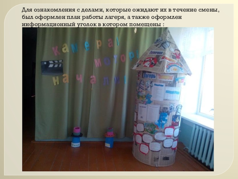 оформлен план работы лагеря, а также оформлен информационный уголок в котором помещены :