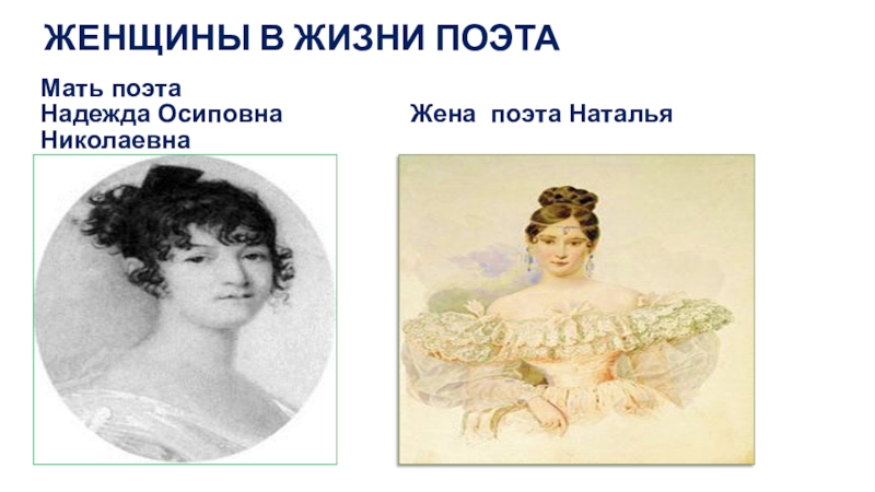 Слайд 7 ЖЕНЩИНЫ В ЖИЗНИ ПОЭТА Мать поэта Надежда Осиповна