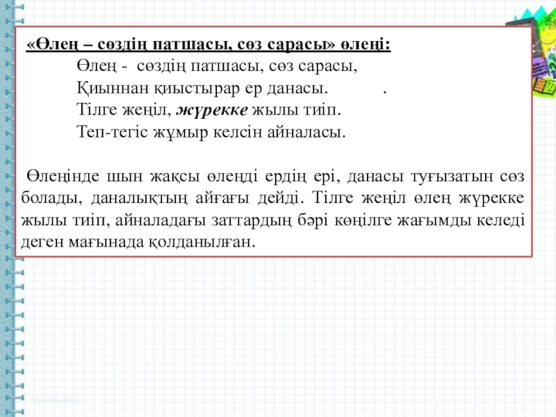Слайд 15«Өлең – сөздің патшасы, сөз сарасы» өлеңі: