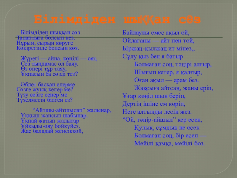 Арсыз, малсыз, ақылсыз, шаруасыз,