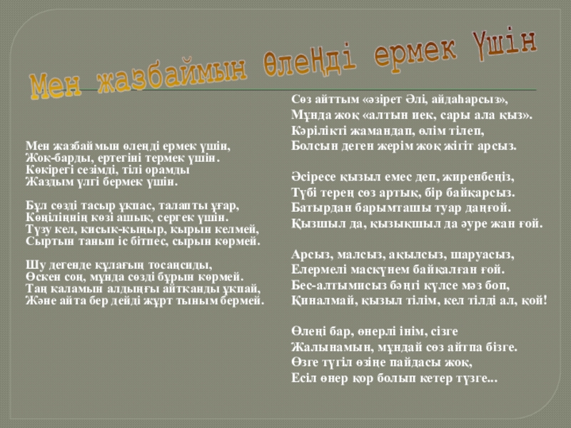 Мұнда жоқ «алтын иек, сары ала қыз».