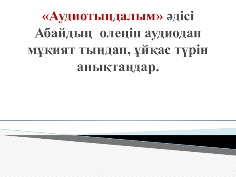 Слайд 10«Аудиотыңдалым» әдісі Абайдың өлеңін аудиодан мұқият тыңдап, ұйқас түрін анықтаңдар.