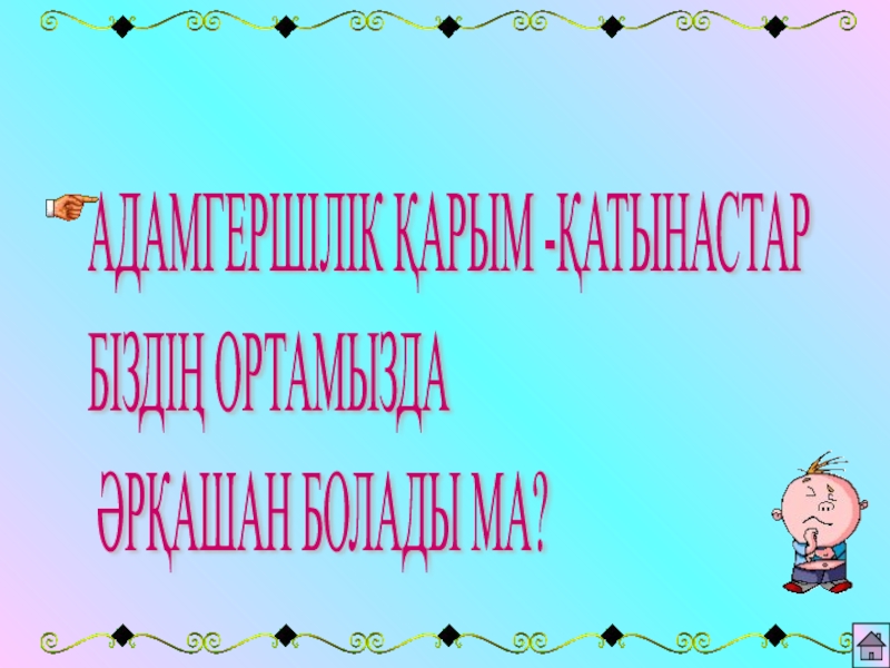 АДАМГЕРШІЛІК ҚАРЫМ -ҚАТЫНАСТАР  БІЗДІҢ ОРТАМЫЗДА   ӘРҚАШАН БОЛАДЫ МА?