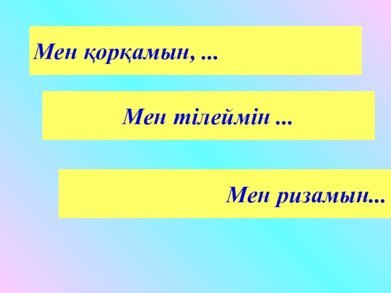 Мен қорқамын, ...Мен тілеймін ...Мен ризамын...