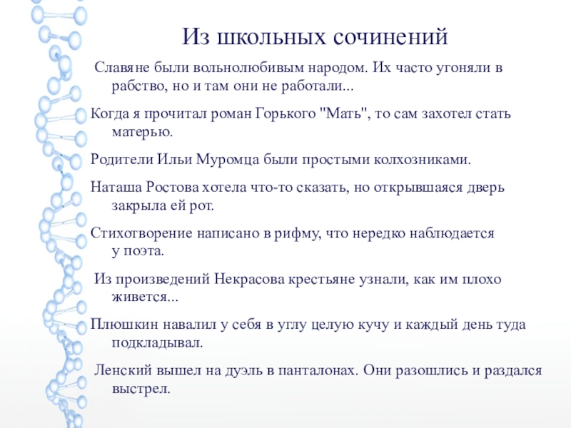 Из школьных сочинений Славяне были вольнолюбивым народом. Их часто угоняли в рабство, но и там они не работали...Когда