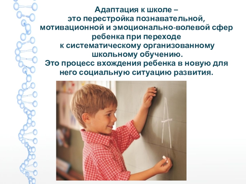 Адаптация к школе – это перестройка познавательной, мотивационной и эмоционально-волевой сфер ребенка при переходе к систематическому организованному