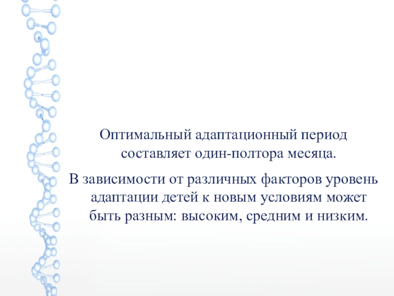 Оптимальный адаптационный период составляет один-полтора месяца. В зависимости от различных факторов уровень адаптации детей к новым