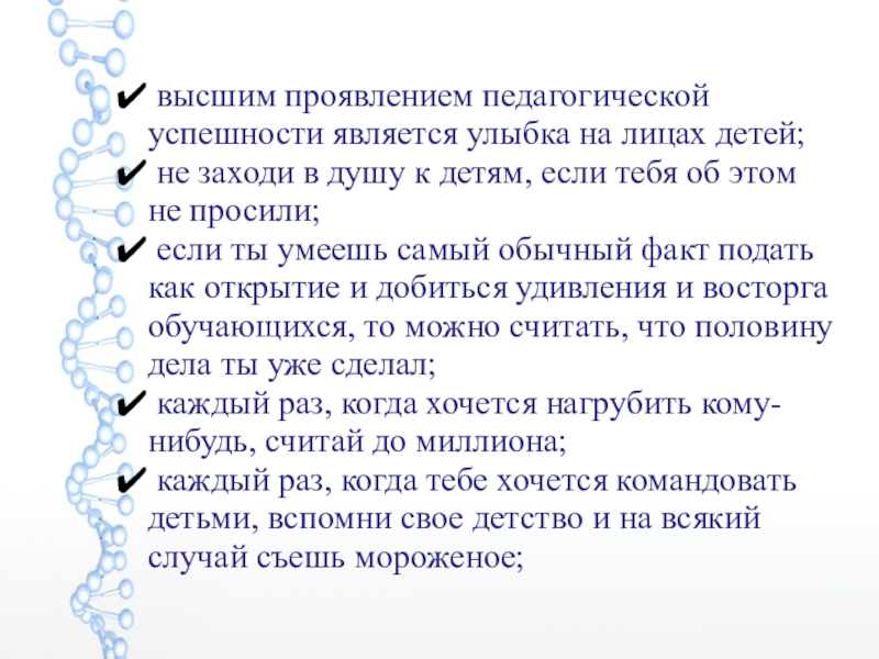 высшим проявлением педагогической успешности является улыбка на лицах детей; не заходи в душу к детям, если