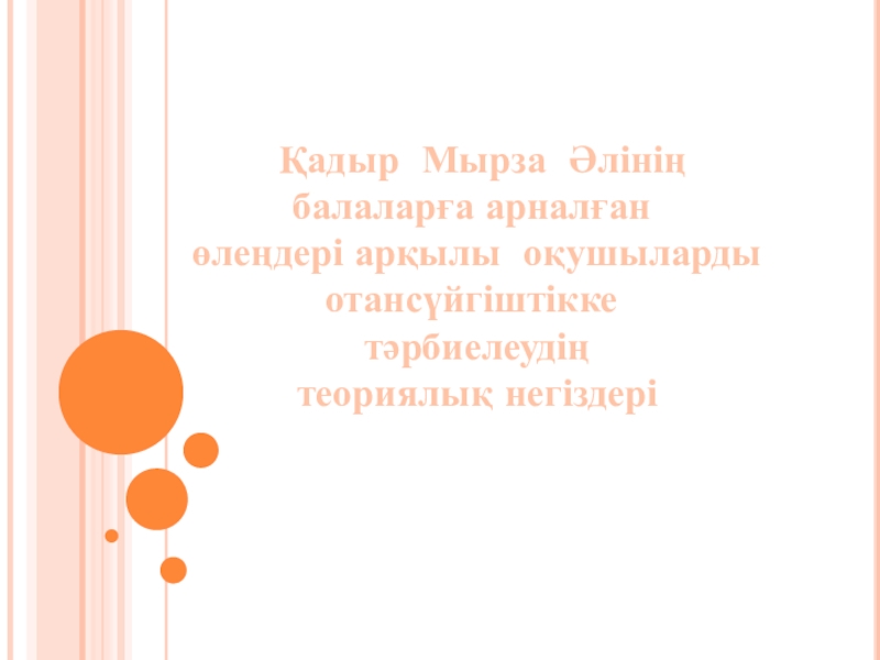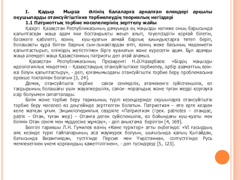 Слайд 5І. Қадыр Мырза Әлінің балаларға арналған өлеңдері арқылы оқушыларды отансүйгіштікке тәрбиелеудің