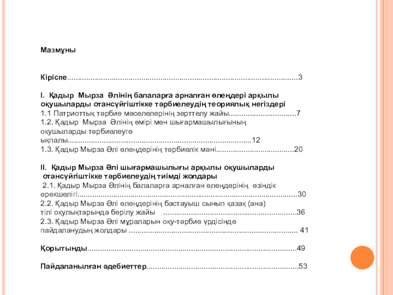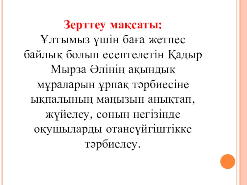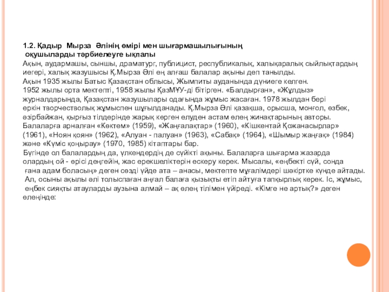 - Қадыр Мырза Әлі өлеңдерінің тәрбиелік мәні.