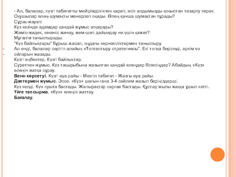 Мұғалім «Күз» өлеңін мәнерлеп оқиды.