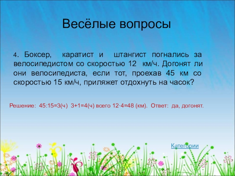 Решение: 45:15=3(ч) 3+1=4(ч) всего 12·4=48 (км). Ответ: да, догонят.