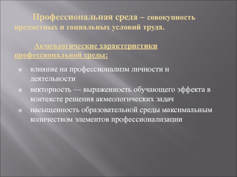 насыщенность образовательной среды максимальным количеством элементов профессионализации