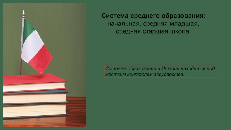 Слайд 6Система среднего образования: начальная, средняя младшая, средняя старшая школа.