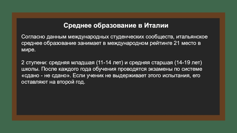 Согласно данным международных студенческих сообществ, итальянское среднее образование