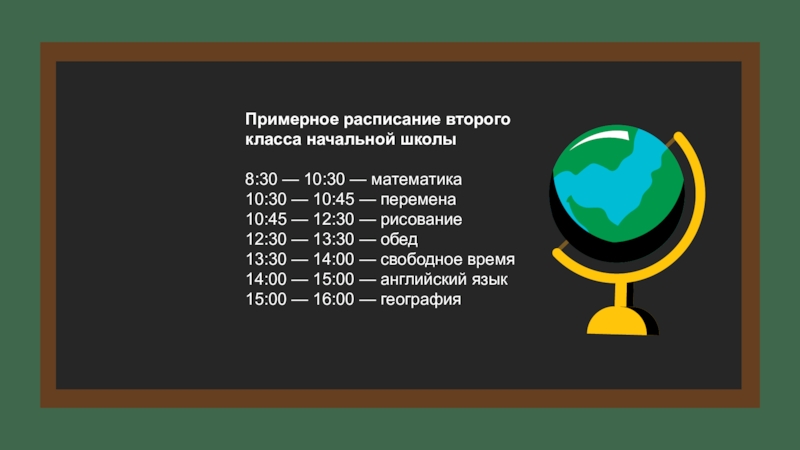Родителям предлагают выбрать расписание для своего ребенка: учиться до обеда и все домашнее задание выполнять дома или учиться до четырёх, делать все уроки в школе и приходить домой только отдыхать. Также у родителей есть выбор: учиться или не учиться их ребёнку в субботу.