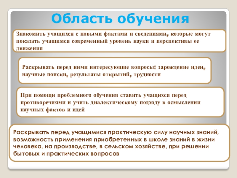 При помощи проблемного обучения ставить учащихся перед противоречиями и учить диалектическому подходу в осмыслении научных фактов и идей