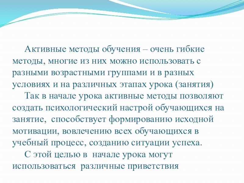 Слайд 8 Активные методы обучения – очень гибкие методы, многие из них можно