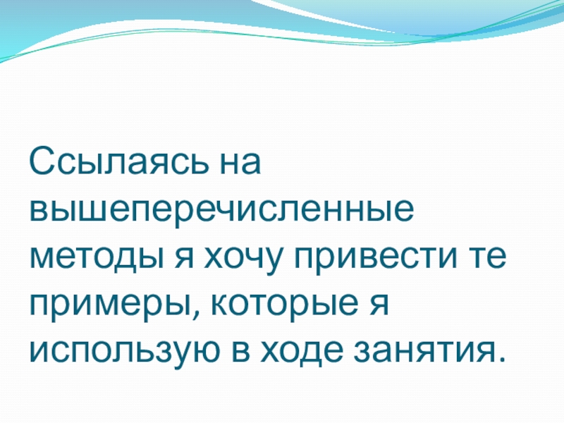 Слайд 17Ссылаясь на вышеперечисленные методы я хочу привести те примеры, которые я