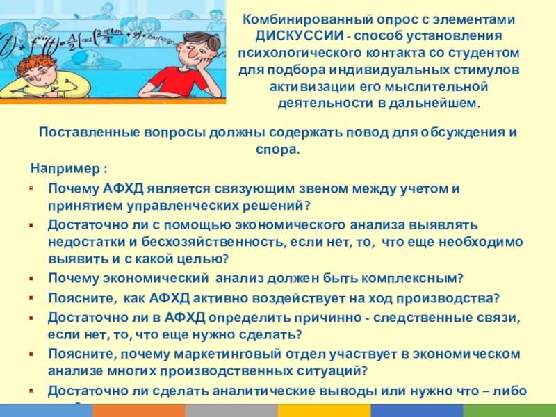 Поставленные вопросы должны содержать повод для обсуждения и спора.